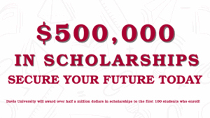 At Davis University, scholarships aren’t just for those who qualify for financial aid. No matter your status of financial assistance, you may still be eligible for a variety of scholarships based on your background, goals, or academic journey. Don’t miss out—explore your opportunities and apply today!